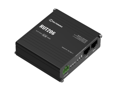 The RUT206 is a compact industrial router that supports RS232 and RS485 serial interfaces, along with both active and passive PoE inputs. Its rugged design, 2-pin power input, and expandable data storage via a microSD slot make it an ideal choice for a range of IoT and M2M applications. This 4G Cat 4 router comes with RutOS open-source software and supports key industrial protocols like Modbus, DNP3 and DLMS.
