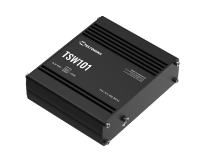 The TSW101 is a plug-and-play automotive switch dedicated to in-vehicle applications. Featuring five Gigabit Ethernet ports, including four with PoE+ support, the TSW101 can power your end devices while connecting them to the Internet. This automotive switch can be powered by 12 V or 24 V car battery, requiring no additional PSU.